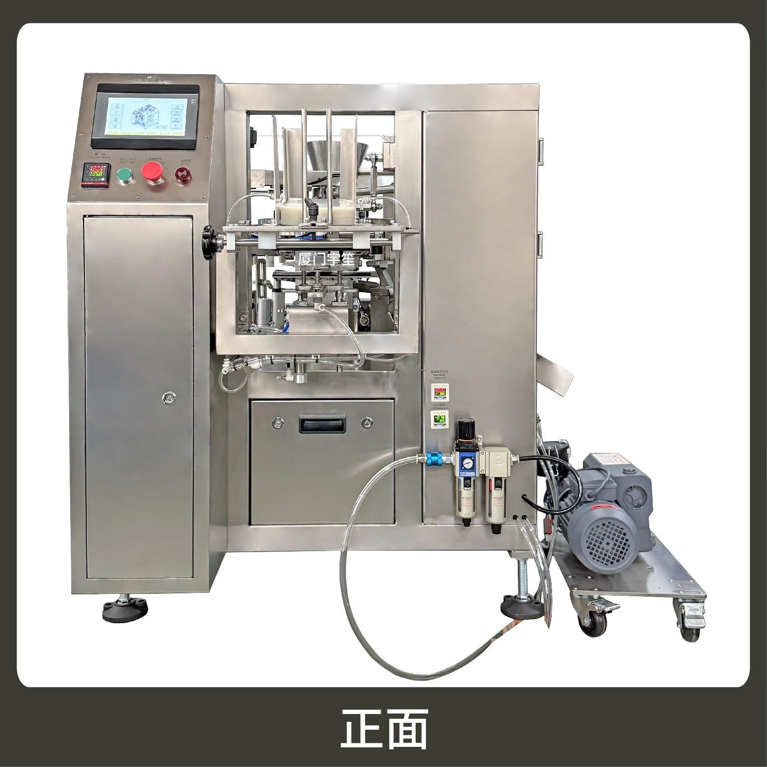 The machine adopts an intermittent rotating platform with multiple stations (bag feeding, bag opening, filling, sealing, etc.) distributed circularly. Continuous process connection is realized by rotation, with compact structure, space saving, and high efficiency for high-volume packaging requirements.